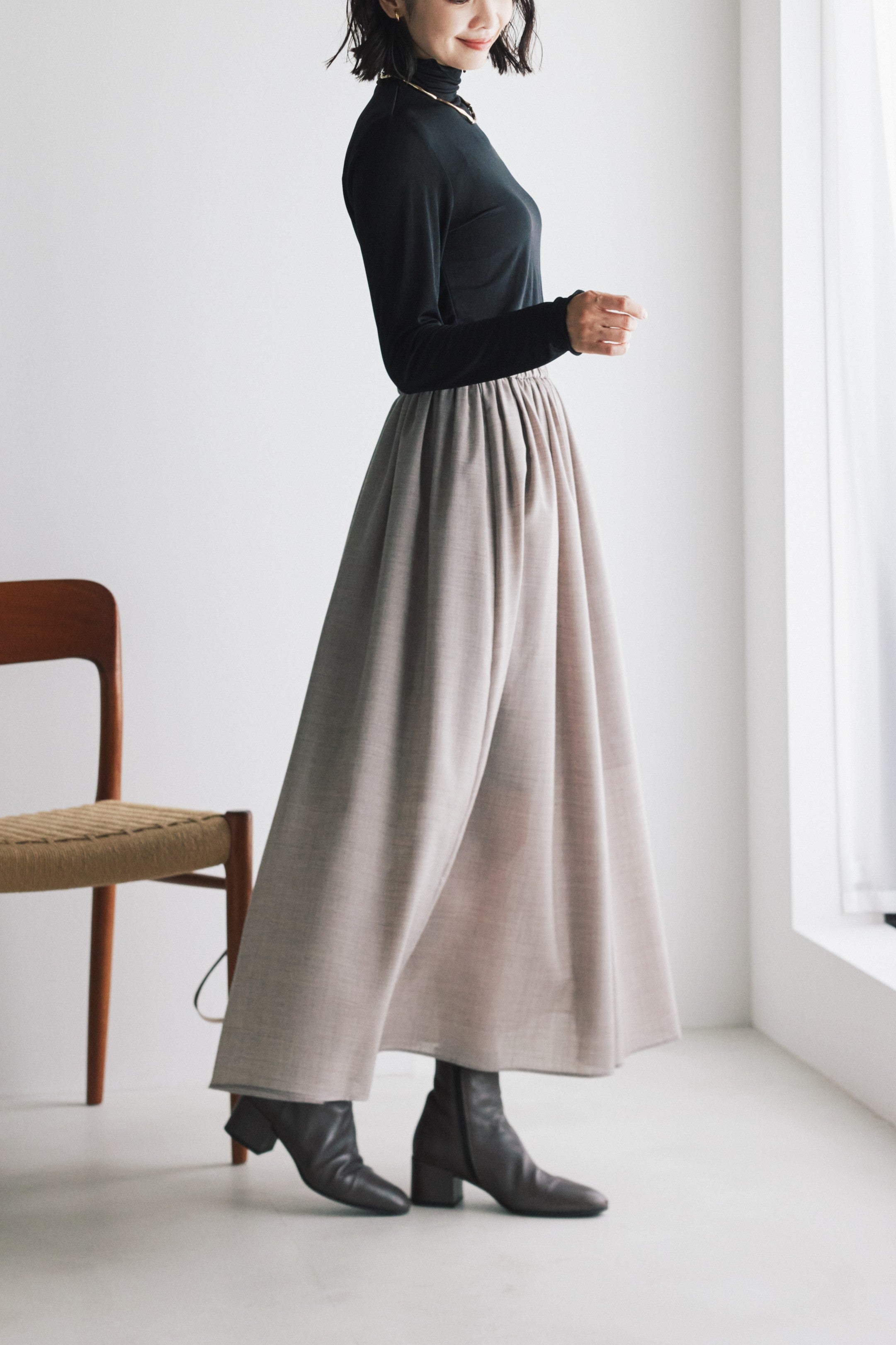 Fine Wool Gathered Skirt