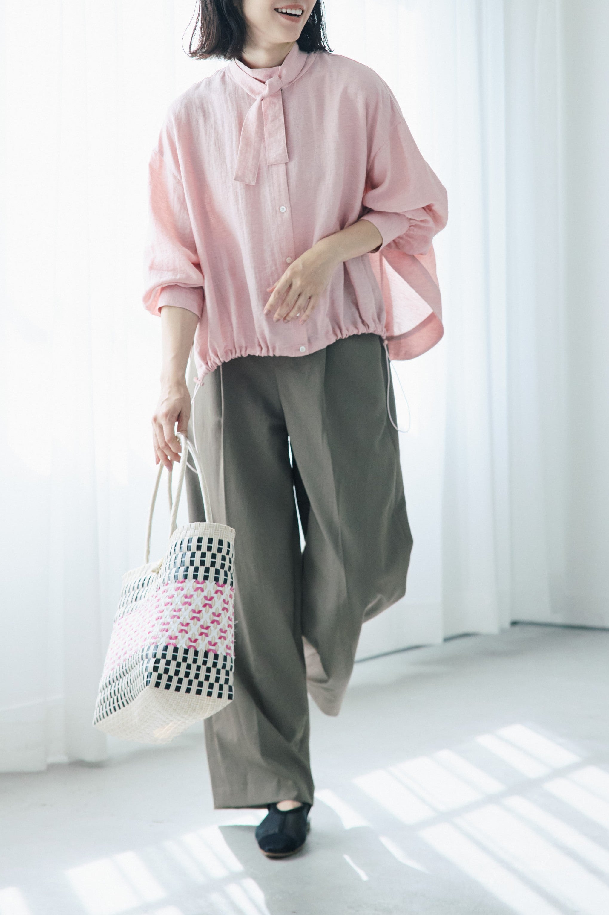 Tie-neck Drawstring Shirt